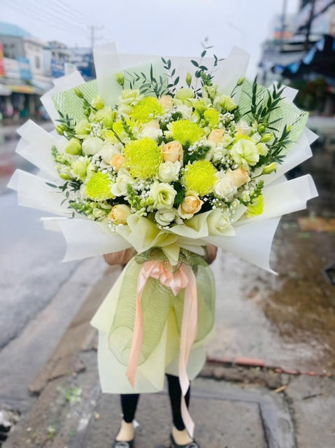 Bó hoa kết hợp giữa hoa hồng tím lãng mạn và hoa cúc trắng tinh khôi, tạo nên vẻ đẹp hài hòa và quyến rũ. Phù hợp làm quà tặng trong các dịp sinh nhật, kỷ niệm hoặc bày tỏ tình cảm chân thành.