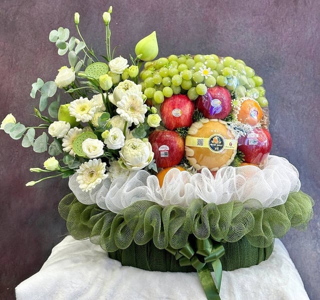 Giỏ Trái Cây Kết Hợp Hoa Tươi Cao Cấp KF316