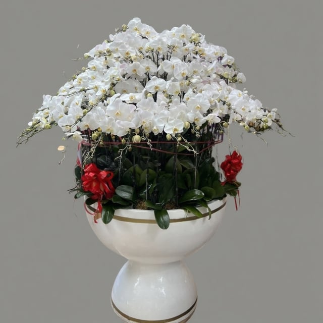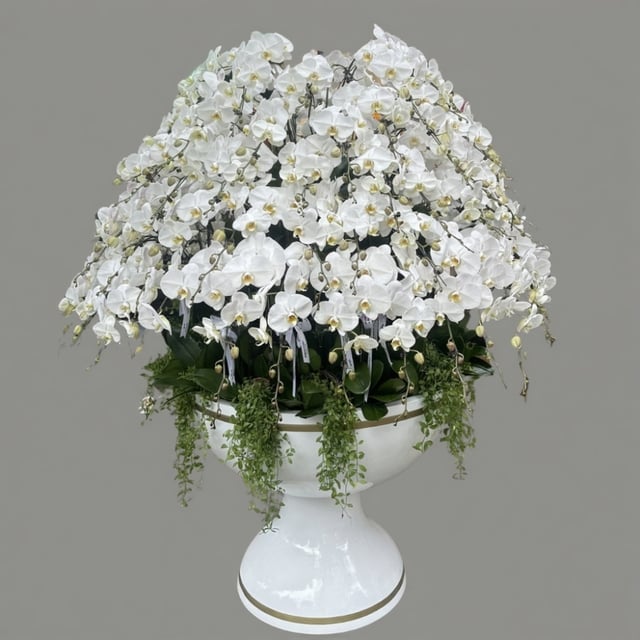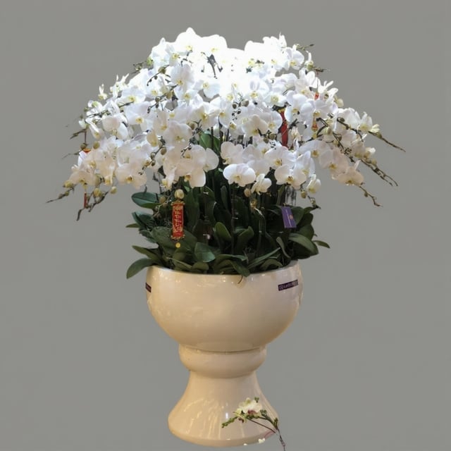 Chậu hoa lan hồ điệp Tết màu trắng 90 cành sang trọng, tinh tế