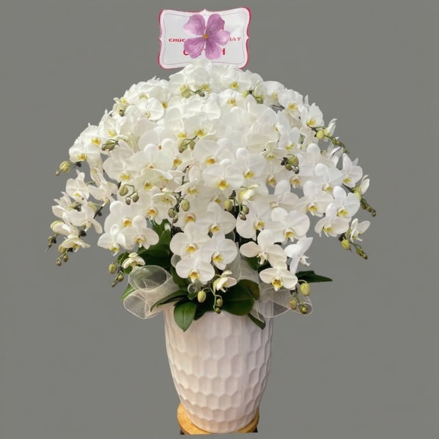 Chậu hoa lan hồ điệp Tết màu trắng 50 cành sang trọng, tươi mới