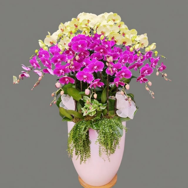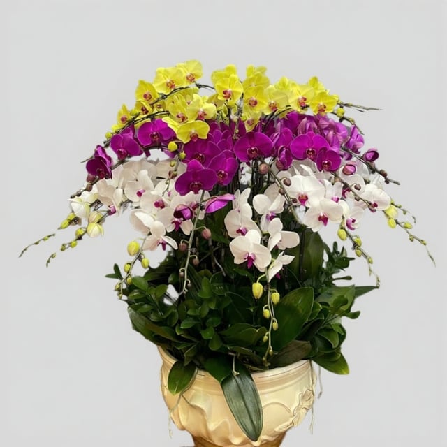 Chậu hoa lan hồ điệp tím vàng Tết đa sắc 100 cành phát tài, phát lộc