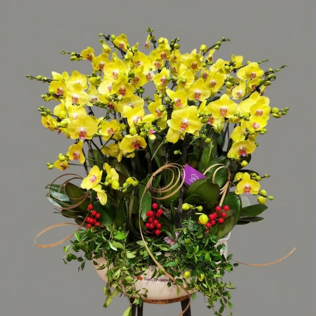 Chậu hoa lan hồ điệp Tết thuyền hoa màu vàng 70 cành tài lộc